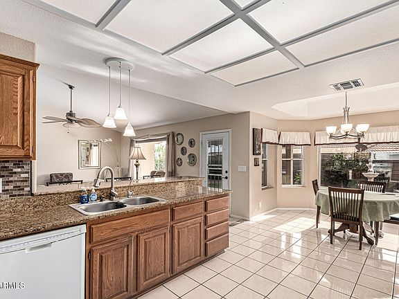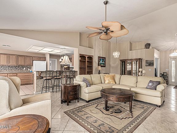 Nestled on a highly desirable corner lot! Become the proud new owner of this beautiful home in the 55+ Community of Sunland Springs! Inside, the inviting open floor plan is complemented by tile flooring, tall vaulted ceilings, and neutral palette throughout. Impeccable kitchen boasts plenty of cabinets with crown moulding, built-in appliances, mosaic tile backsplash, granite counters, a two-tier breakfast bar, and a lovely bay window in the dining area. Discover the large main retreat, offering plantation shutters and an ensuite comprised of dual sinks, soaking tub, and a walk-in closet. Don't miss the flexible den ideal for work or play. Enjoy peaceful mornings under the covered patio in the backyard. Comes furnished!