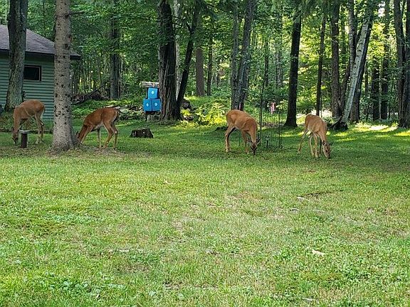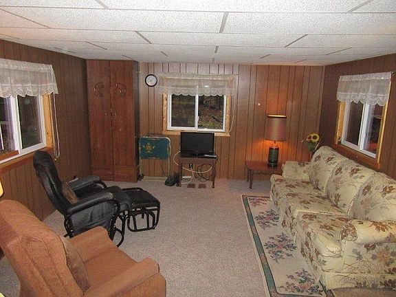 Check out this great getaway or year around home that comes completely furnished. A circular drive welcomes you onto this just over an acre wooded parcel, with a detached garage and an extra storage shed. Hoop frame structure can be utilized with a new cover or improvise it into a chicken coop, greenhouse or pergola, the ideas can run amuck on this one. A large mudroom/porch has been used for overflow sleeping area, game area and extra storage. Two very nicely sized bedrooms both have large closets and the bath is complete with tub, extra long counter top and possible rooms for a washer and dryer. All flooring has been very recently replaced and many of the ceilings are brand new. Home is extremely well cared for and loved. All purpose zoning gives way to many uses and the taxes are very affordable.