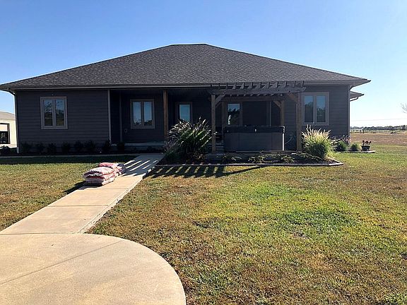 Beautiful ranch style home on 9+ acres. Huge master suite with an attached 12x12 sitting room. Large bath with jetted tub and walk-in double shower. Walk-in closets. Full finished basement with wet bar. Total of 5 bedrooms, 3 1/2 bath, office, theater room. Total entertainment area in the back of the house with a patio, hot tub and firepit. Also has a 40x60 shop with a 10x40 mezzanine and a 3/4 bath.
