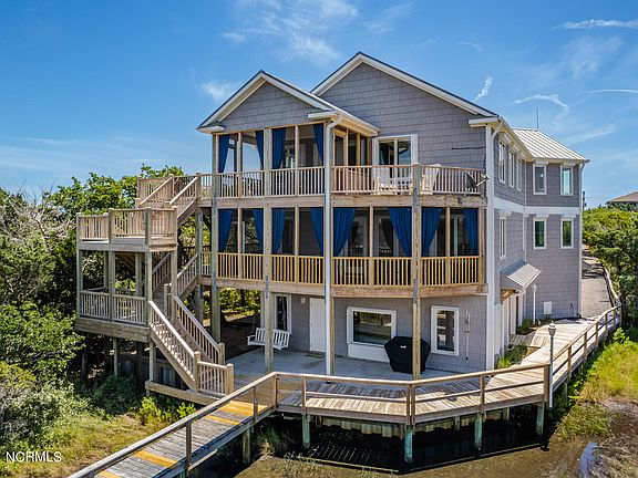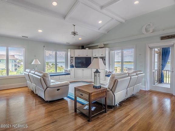 1144 N Anderson MLS Enter down the live oak covered drive into your private space on the deep water sound in Topsail Beach. This beautiful custom home that has been meticulously maintained boasts some of the most breathtaking views on the island. The reverse plan gives you sweeping views of the sound from the entire living area. Screened porches as well as open decks expands the living and entertaining space on both levels. Hardwood floors and vaulted ceilings are just some of the features of this fully furnished home that could be used for full time living or family vacationing. This home is wired for a whole house generator. Stainless steel appliances are featured in the kitchen with granite counters and a bar that seats 6 in addition to the dining area. Abundant storage throughout, walk in pantry, a laundry room with utility sink, large closets, two car garage with workshop and place to keep the water toys are just some of the features of this home. The master suite has sweeping sound views, walk in tiled shower and a screened porch on the middle floor. There is also an elevator located in the center of the home to all levels. The home has storm protection on windows and doors throughout. Your pier with a boat lift and jet ski lift are waiting as well! And there is a deeded beach access just across the street. The best of both worlds! Take a look.......... properties like this do not come to the market often.
