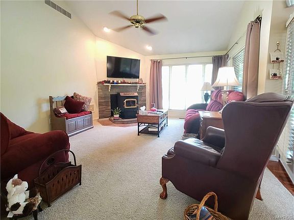 LOCATION, LOCATION, LOCATION!!! This charming contemporary home is one you must see! This beauty sits on a large very private lot, offering an open floor plan with a full finished basement. A half bath has been recently added and the full bath has been updated. Master bath/bedroom has a unique sitting area/vanity set up that is sure to please. Pellet stove to keep you warm on the chilly fall and winter nights! A MUST SEE WITH YOUR OWN EYES!!