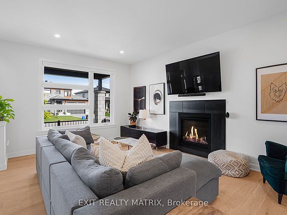 Welcome to the Falcon model in Embrun - a stunning luxury home designed for family living and entertaining. Step inside to a bright and elegant main floor, featuring a sophisticated living room with a cozy fireplace and oversized windows that flood the space with natural light. The open-concept kitchen and dining area is the heart of the home, offering a functional island, walk-in pantry, and patio doors leading directly to the backyard oasis. A convenient main-floor laundry room and stylish partial bathroom complete this level. Upstairs, discover four spacious bedrooms and two bathrooms, including a luxurious primary retreat with a walk-in closet and spa-inspired 5-piece ensuite. The partially finished lower level extends your living space with a rec room, den area, subfloor, divisions, and a full 3-piece bathroom, just waiting for your final touch. Outdoors, the beautifully landscaped yard is a true retreat. Enjoy the 16x34 interlock patio, hot tub, and charming gazebo, perfect for relaxing or hosting summer gatherings. A spacious 8x16 shed provides ample storage, while the fully fenced yard ensures privacy and comfort. Ideally located close to parks, schools, and recreation, this home offers elegance, comfort, and lifestyle all in one.
