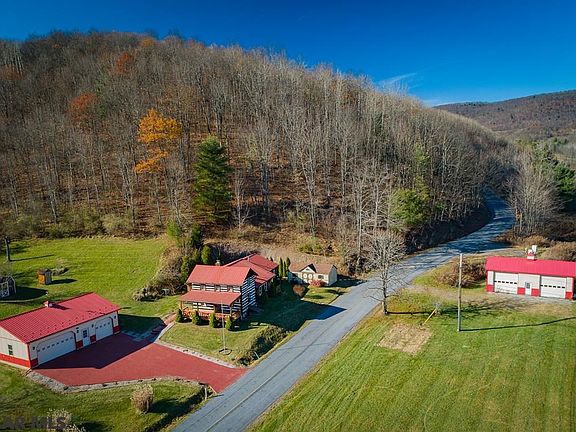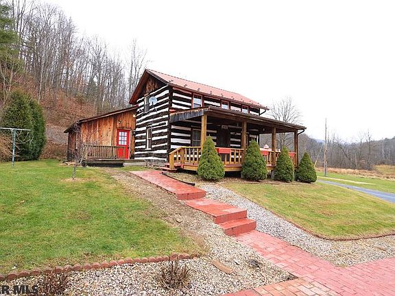 The Great Escape. Off a quiet country lane only 17 miles from State College perfectly placed on 54.55 serene acres you will find this countryside log home overflowing with charm. Cozy covered front porch leads you to the spacious & relaxed interior. Large family room with vaulted ceiling, exposed logs & propane fireplace is the perfect place to entertain guests. Updated kitchen with solid wood cabinetry as well as built-in window benches, solid surface countertops & a breakfast nook with a cozy coal stove. The first-floor master suite boasts a private full bath as well as a convenient laundry room. There are two large detached metal buildings/garages (30x30 & 14x40) delivering 5 stalls providing tons of storage & workspace. Bell Hollow Run flows through the lower portion` of the acreage divided by the road. Currently enrolled in Clean & Green. True country living at its finest with beautiful scenic views.