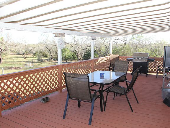**BEAUTIFUL 12+ AG EXEMPT ACRES WITH HOME!** Awesome property with great home and pool! Numerous outbuildings and improvements! Goat fencing surrounds property and cross fencing. Home boasts open floor-plan w/ large kitchen, great bedrooms & large front & back covered porches to enjoy those beautiful Texas sunrises & sunsets. Includes lg covered pull-thru for cars, trucks, RV or trailer. Includes tack bldg., horse stalls, greenhouse, deer feeders, fruit trees, & more! Pet goats negotiable. Turn key!