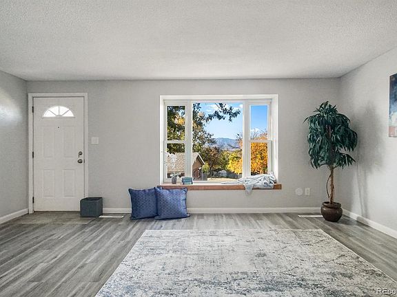 Beautifully updated townhome in established Cimarron Hills Complex with beautiful views of Pikes Peak. New luxury vinyl plank flooring on main level and 2 of the bedrooms, and fresh paint. The basement has new carpet, a large living space, an area that can be used as a guest room or office, laundry, plus huge storage area. Covered patio plus 2 car covered parking in rear. This home is clean and move in ready!