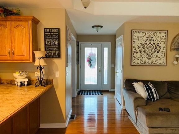 Brick & vinyl 3 bedroom, 3 bath home located on a large corner lot. Open floor plan, double tray ceiling in great room. Breakfast bar, dining room, & utility room with sink on main floor. Full basement partially finished with full bath. Egress window & studded for quick finish. Large storage area. 3 bays in garage, 2 full and 1 smaller. Built in work bench. Lot is irrigated & landscaped.