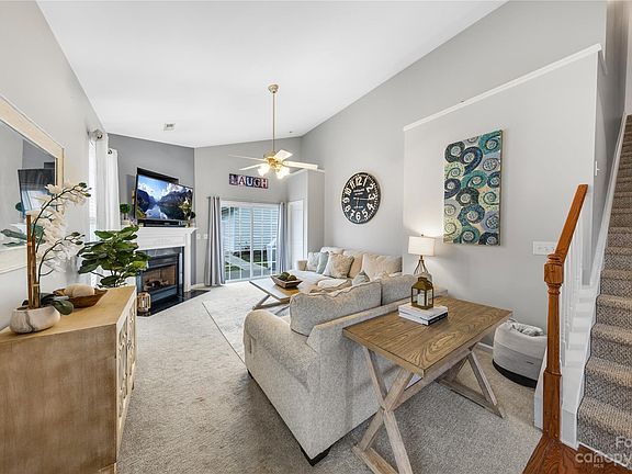 Don't miss this end unit in highly desired Callonwood, Matthews. Just minutes to downtown Matthews this townhome has it all. This 3BR end unit gives you plenty of extra light and privacy. Primary suite on Main floor, family room with vaulted ceilings to make it very spacious, gas fireplace, newer carpet in family room and primary bedroom. Dining area open to kitchen. Kitchen with granite countertops - tons of countertop space, great kitchen for cooking. Half bath with new vanity. Upstairs with two spacious bedrooms and full bath. Detached one car garage and large patio area with privacy fence on the sides - great for entertaining. Storage closet. Callonwood is a lovely community with well maintained homes and townhomes professionally landscaped grounds and amazing amenities including club house, pool, and recreation area. You won't be disappointed with this great starter home or investment property. Large common area out front of the townhome