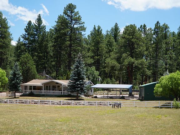 Great views of the Mogollon Rim, over looks meadow. 1.21 Acres with private well, Horses OK. Recently remodeled, 3 bedrooms, 2 bathrooms, new kitchen with new appliances, completely remodeled, large carport & metal garage and covered front porch. Utility room with washer & dryer. Sun room, furnace & AC, new paint inside and out. Furnished see document tab. Well house with carport.