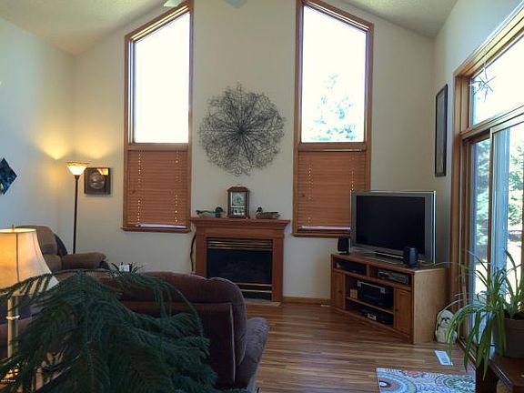 Quiet Setting Right in Town! Welcoming tile floor entrance. Large master suite with walk-in closet and full bath. High vaulted ceilings in Kitchen/dining room and living room and laminate flooring. Large country kitchen with eating area. Gas fireplace and surround sound in living room. Wood deck off living room. Main floor laundry, guest room and guest bath. Newly finished lower level with large bedroom, full bath, 2 family rooms, gas fireplace and plenty of storage areas. Finished garage. Sp...