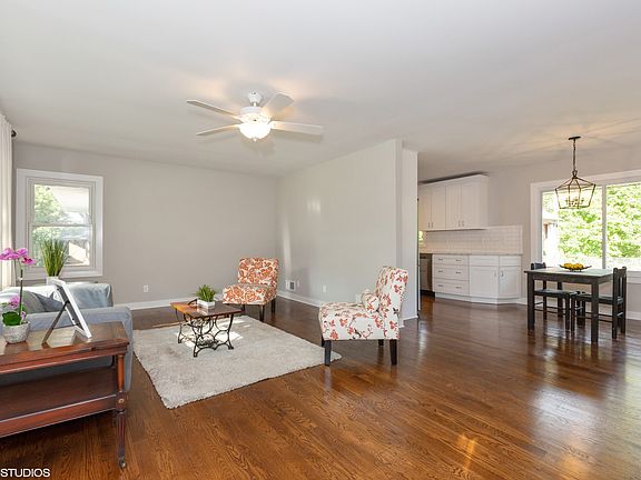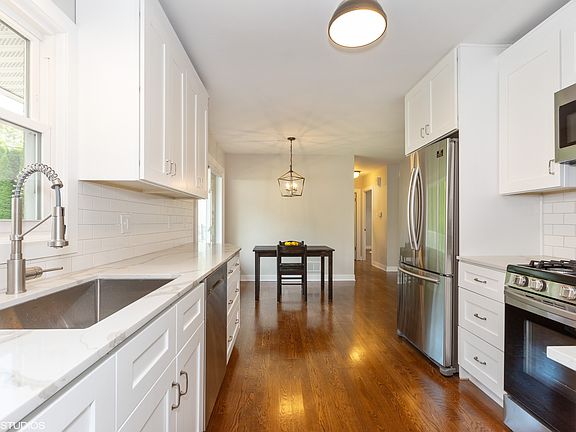 Awesome rehabbed mid-century modern ranch! Beautiful, high-end finishes! Attention HGTV viewers! Open, flowing floor plan. Amazing white designer kitchen with white cabinets, new stainless steel appliances, quartz countertops compares to homes at twice the price! Gorgeous remodeled baths! Super spacious master bedroom is a great to find in this size home! Enjoy entertaining in the huge family room that can be home theater, bar, club room & possible third bedroom. It's possible to convert attached garage into master suite or 1st floor family room. Extra wide lot allows for putting in a driveway to the north and adding detached garage. All-brick ranch with great curb appeal located on a pretty tree-lined street in the desired Kelvin Grove subdivision. Spacious, private yard extends beyond fence & has wooded view with no neighbors behind you. Architectural shingle roof, Replacement windows in 2018, CAC in 2019, newer hot water heater. Close to Rotary park, schools, downtown. Easy access to I-355 & I-80.