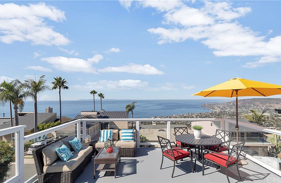If you are looking for envious coastline views 1144 Katella possibly has some of the best in Southern California. The property overlooks an ever changing view of Laguna Beach whitewater, Catalina Island, and on to the Palos Verdes Peninsula The house was taken down to the studs for a complete remodel and the result is a home which has a comfortable, modern and stylish vibe. The upper level, or heart of the home, is an amazingly open airy living space. It includes a living room with fireplace, dining room and a well proportioned modern kitchen, all of which come with ocean views. Passing through sets of glass doors you access a panoramic view terrace. This oversized "outside room" is large enough to sun, sit or dine with friends and family, whilst taking in those magical sunsets. A fourth ensuite bedroom combined with a flexible space off the kitchen, ideal for a home office or media room, round out the upper level. The lower level hosts three bedrooms, including a sizeable master suite with its own private ocean view terrace. All three baths have been updated and share a crisp aesthetic and thoughtful design. In addition to a two car garage, with workspace, the front drive can accommodate two extra cars. 1144 Katella's location is ideal - a short cul-de-sac frequented almost entirely by residents and has the benefit of being considered one of the few front-row streets that share this incredible coastline vista. Just move in and enjoy the view and your spectacular home!