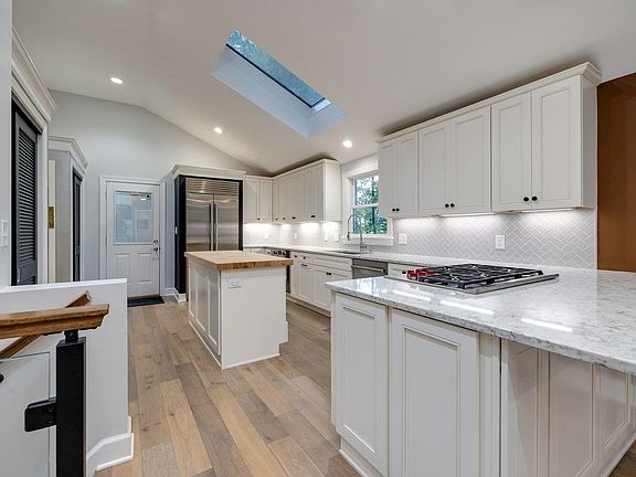 - Double Vanity, Primary Downstairs, Sitting Area in Primary, Skylights, Walk-In Closet(s), Eat-in Kitchen, Home Office, Kitchen Island, Utility Room, Vaulted Ceiling(s)