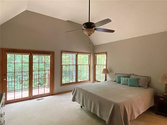 Custom Built Home and Chalet, Nested on 5.3 Acres, South of Lawrence, KS. The Home Features: 4+ Bedrooms, 4 Bathrooms, 4900 sq. ft. of Living Space, New Kitchen, Spacious Master Suite, Library, Dining Room, Large Laundry Room, and Abundant Windows throughout. The Walk-Out Lower Level features a Cozy Family Room, Bedroom, Office, Hobby Space, and lots of Storage. The property also features a Wooded Retreat Setting, large Raised Deck, and a Beautiful Two-Level Chalet with More than 600 sq. ft. of Hardwood Floors. This property is ready for your preview; schedule a showing today! The property is being offered through an online auction and the listing price reflects the opening bid.