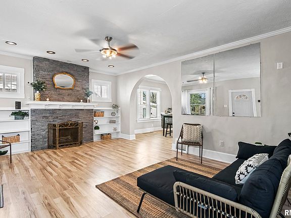Charming, updated 2 bed 1.5 bath home in the historic Enos Park neighborhood, a block from Gehrmann Park and just moments from downtown and the medical district! This home features a range of recent updates, including central air being added in 2024, all-new windows (2024/2025), shingled roof replacement in 2023, remainder of house roof in 2024, new metal roof on the garage (2024), updated plumbing (2025), and all-new toilets/bathroom vanities. The large living room is perfect for entertaining, with tall ceilings, a cozy fireplace, built-in shelving, crown molding and large windows for plenty of natural light. The eat-in kitchen adjoins a formal dining room and laundry is on the main level. Upstairs, you'll find two bedrooms, both with walk-in closets, and a second bathroom. Home features a 2-car detached garage and an unfinished basement provides storage and room for mechanicals. Steps away from the new 3rd Street Greenway project, which will bring new green spaces and a bike/walking/exercise trail just steps from your front door! Pre inspected for buyers’ convenience.