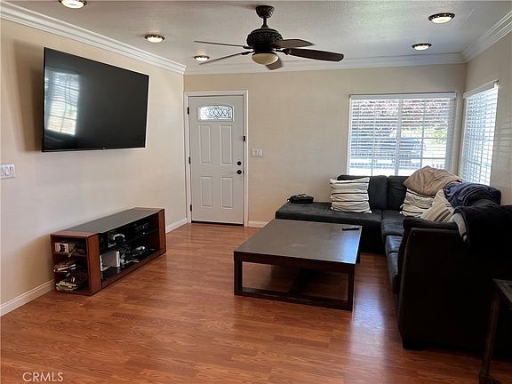 Perfect stater home just waiting for a new family to call home!! Come check out this remodeled 4 bedroom 2 bath home located in the heart of Beaumont. Upgrades include dual pane windows, tile and laminate flooring, recessed lighting, granite counter tops, crown molding and more. Spacious living that opens up to the kitchen with plenty of storage and counter space. Separate dining room area with French doors that access the back yard that is fully fenced with two large sheds with one of them being fully finished, perfect for a teen room. Also, there is a 12x20 room built into the back of the home which would make for extra storage or turn into the perfect man cave. Centrally located with walking paths down Palm Ave. Perfect home for someone looking for low property taxes and no HOA.