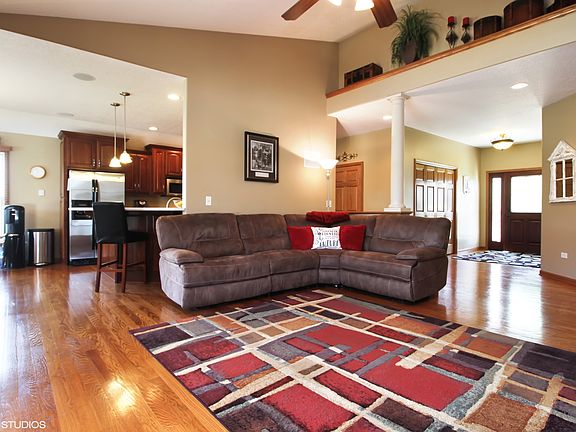 Tastefully done custom built ranch style house and only 10 years young! Offers over 4000 finished square feet! Beautiful landscape adds to the fantastic curb appeal. Additional tree and bush hedge coming soon to the backyard by Tholens. Inviting foyer showcases the great room with fireplace & cathedral ceilings. Beautiful hardwood floors throughout the first floor. Large open kitchen with stone counter-tops & custom cabinetry. Pull up to the breakfast bar or dine in the eat in kitchen nook. Spacious laundry room conveniently located. Over-sized 3 car heated garage. Master suite features walk in closet, whirlpool, separate shower, & double sinks. Full finished basement with an open concept in mind & generator for peace of mind. Ideal for office, workout area, media room, play room, etc...even a partial kitchen built in and bathroom for convenience. Enjoy morning coffee as you watch the sunrise from your back covered patio. Don't let this one pass you by!