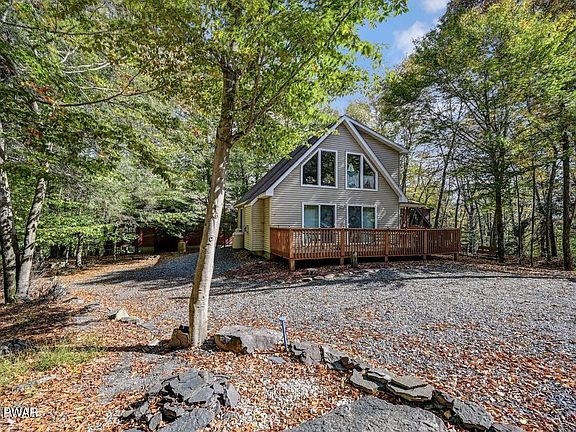 Wallenpaupack Lake Estate-Well maintained chalet being sold furnished. Home features 2BD,2BA w/ sleeping loft, open floor plan, propane gas fireplace, front deck, shed, extra storage in crawlspace and plenty of parking. WLE amenities offer 3 lakes, 2 beaches, 2 outdoor pools, 1 indoor pool, lodge and many family activities throughout the year. Golf Carts are allowed.