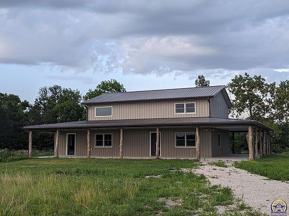Have you been thinking about buy a small piece of land and building a barndo on it? Yep, you and everyone else! Well quit thinking about it, here's your chance. This newly constructed home sits on 13+ acres within 10 minutes of Emporia. Contains three bedrooms, with the master located on the main level, and two and a half bathrooms. Laundry room located inside the master bathroom / closet area for extra convenience. A large kitchen/dining and living combo welcomes you in the front door and a large family room (12x38) rounds out the main floor. Upstairs is a nice sized loft area plus two bedrooms and a full bathroom. Outside you will find a covered wrap around porch with multiple points of access from inside the home. Like some rustic touches? The patio posts are all made from locally cut hedge trees as well as the loft wall supports. You won't find a much more unique home on the market right now. Come see it while you can.