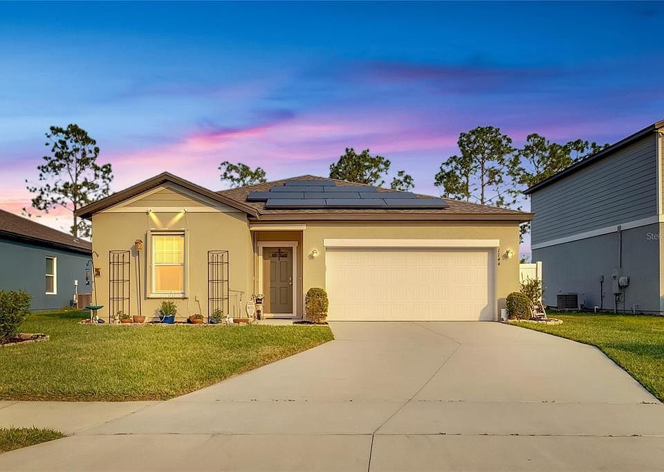 One of the best Well Kept 2019 3/2 homes that you will see...Move in Ready...This home boasts an Open Floor plan making it cozy and relaxing. The kitchen has Granite countertops with an Island for those morning breakfasts. The tile flooring makes cleaning very easy especially when moving from the family room to the pool area. The Master bedroom is spacious along with the Master Bath and looks out to the pool. The Guest bedrooms are at the front of the home and give privacy for those that visit. Besides being one of the nicest homes you will see is the backyard view is Open with no homes behind you. The Solar panels are leased and provides for very low energy bills. The pool is very nice and inviting with a screen enclosure Plus a Covered patio area to stay out of the sun or just relax with friends.