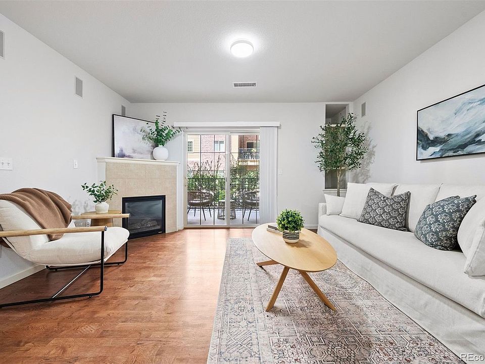 Welcome to your new home in the heart of Highlands Ranch! This incredible floor plan is PERFECT for anybody who needs a full bedroom plus some extra space – make the 2nd “bedroom” a guest room, the perfect home office, or use it as a true 2nd bedroom (there is no window, so it is technically non-conforming yet it’s a super functional space!). You will LOVE living on the first floor of this gorgeous complex, it offers easy access without any stairs. Perfect for unloading groceries, walking your dog, or just getting out and about in the neighborhood! It has a private balcony overlooking lush green grounds, ideal for relaxing with friends or sipping your morning coffee. The condo’s cozy fireplace adds a touch of warmth, making it the perfect retreat on chilly evenings. Situated in a beautifully maintained, secured community with updated common areas, this condo provides easy access to E-470, making your daily commute a breeze. You’re also just minutes away from a variety of shops and restaurants, bringing convenience right to your doorstep. The community amenities enhance your lifestyle with a well-equipped fitness center, a refreshing pool, a fun playground and storage in the underground garage. Experience the tranquility of quiet, serene living while enjoying the best of Highlands Ranch. With private parking and a location that’s hard to beat, this condo is a true gem. Don’t miss your chance to make it yours!