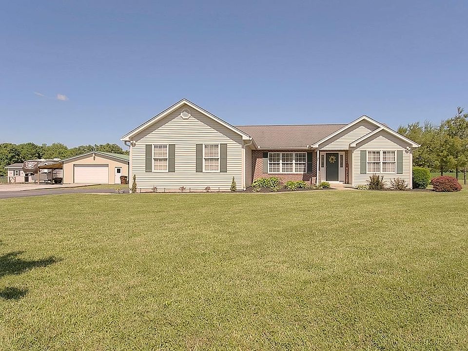Stunning ranch in private development of custom homes. Features an open concept split floor plan, gas fireplace, owner's suite full finished basement, geothermal system, 40x30 workshop & 15x40 lean to! Backyard is a country oasis offering a covered back porch, above ground pool, hot tub & beautiful country views. Situated on 3.5 acre corner lot.