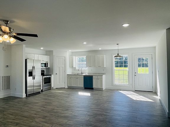 All the Farmhouse feel in this new construction home situated on over an acre! Home features a oversize rocking chair front porch and a patio out back! Enjoy cooking in your new kitchen with stainless appliances, white shaker cabinets, and a corner pantry. Spacious open floor plan with 3 bedrooms and 2 bathrooms. Master suite features a large walk in closet and laundry off of the master bath.