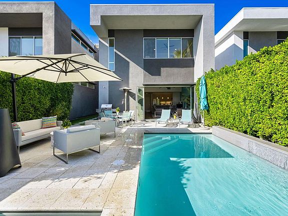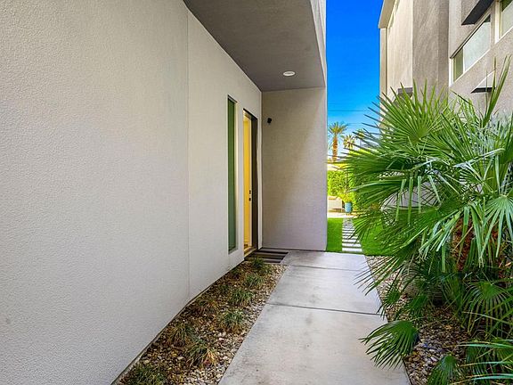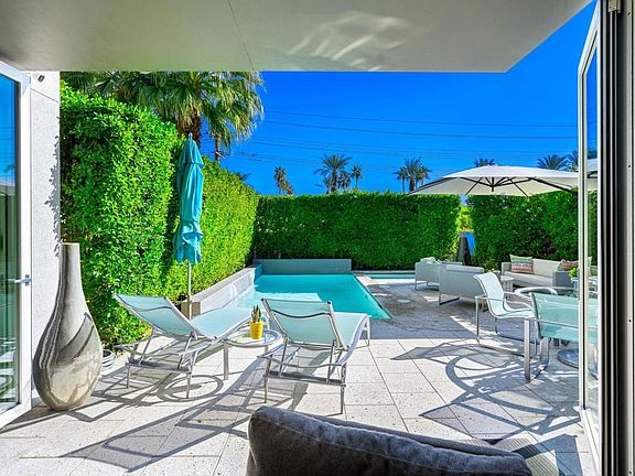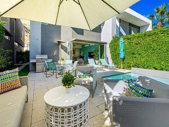 Nestled within the prestigious Dakota gated community, this Palm Springs gem offers the epitome of contemporary luxury living. With 38 single-family homes in a prime downtown location, this property is a true standout.This residence boasts two spacious bedrooms, each with its own ensuite bathroom, as well as a versatile den area. The clean and modern design features beautiful hardwood floors throughout and Porcelanosa tile in the bathrooms. For the culinary enthusiast, the chef's kitchen is a dream come true, complete with Viking appliances, elegant Caesarstone countertops, and Hans Grohe fixtures. The living space seamlessly extends to the outdoors through La Cantina bi-fold doors, leading to a private backyard oasis. Here, you'll find upgraded pavers, a refreshing pool with a soothing water feature, a raised spa, and lush ficus hedges for added privacy. This home is offered fully furnished, with the exception of art and personal belongings, making it move-in ready. Additional highlights include a 2-car garage with an epoxy finish, water softener, and a high-speed Electric Vehicle hookup/charger.Enjoy the convenience of this fantastic location, with nearby hiking trails, bike lanes, and easy access to downtown Palm Springs and its renowned restaurants, shopping, and entertainment venues. Don't miss the opportunity to make this exceptional property your own and experience the Palm Springs lifestyle at its finest.