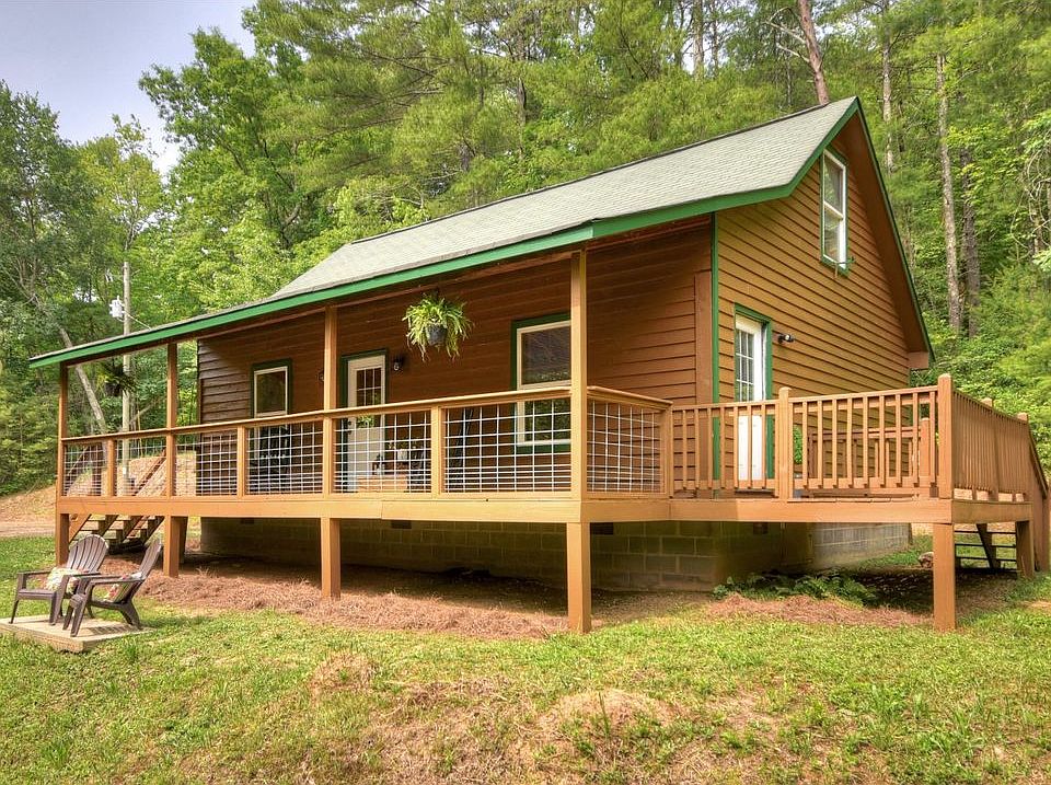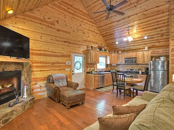 Cabin Cute-y! Check out this 2 bedroom, 2.5 bath mountain cabin on 3 private acres w/167 feet of frontage on small creek near the rear of property. Featuring open concept floorplan; great room has rock fireplace w/gas logs, real wood floors, cathedral ceilings & ponderosa pine wood interior. Kitchen has granite countertops, "worm maple" cabinets & stainless appliances. Both bedrooms are en-suite w/master on main. Powder room & laundry also on main floor. Rocking chair front porch & open deck. Storage shed (8x16) has electricity. Plenty of parking, room to add carport or garage. With a little clearing, you can add a picnic table/firepit area next to creek. Central HVAC, private well, no HOA, no restrictions Located between Blue Ridge & Ellijay, super easy access to Highway 515. Private setting. Recently painted...MOVE IN READY! This cabin will work great for full time living, vacation home or investment.