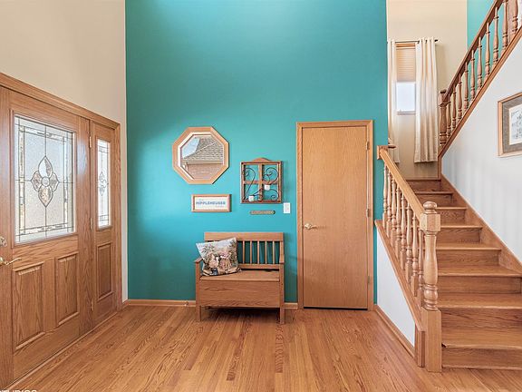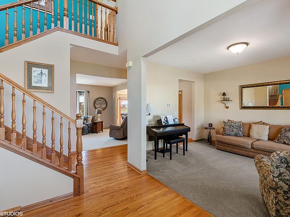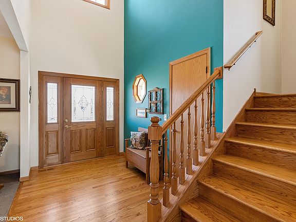 Such a pretty place to make your own - light, bright and immaculately maintained by the original owner. Curb appeal is dialed all the way up, with classic brick, wrap-around porch, mature landscaping, glass-accented garage doors...and peeking around the corner, the waterfront views behind. Step inside to a dramatic 2-story foyer that's nicely open and leads to gracious full oak sideload staircase. Rich hardwood flooring extends into the flex room off the foyer: currently in use as a sitting/music room but also works as formal dining or home office. Great open floorplan from wall to wall across the back of the home offers the space you've been craving. 9' ceilings add to the lofty, airy feel. Amazing south facing water views add serenity to your hectic day. Beautiful, classic stone fireplace accents the spacious family room. Upgraded kitchen offers 42" upper cabinets, granite counters, island, stainless appliances, pantry cabinet, excellent service counter and cabinet section is ideal for setting out the buffet at parties. Oversized dinette area with patio doors leading to deck and beyond. Direct access to the main level laundry/mud room with sink, exterior door to yard and leading to 3+ car heated garage. Updated main level powder room, too. Upstairs, you'll find a wonderfully sweet master suite, with soft decor, tray ceiling and walk in closet featuring custom built-ins. Check out the totally remodeled master bath - WOW! Custom design with granite topped dual sink, private water closet, extra vanity/dressing area, deep soaking tub and ab-so-fabulous XL walk-in shower, fully tiled with multiple shower heads and no need for curtain or doors. Sorry to interrupt...but don't forget to view the three other generous sized bedrooms, each with a unique highlight: bedroom 2 has a very pretty cathdral-vaulted ceiling and circletop window. Bedroom 3 offers dreamy views of the water. Bedroom 4 has a nifty bonus nook that's ideal for study or gaming space. Full hall bath with tub/tiled shower combo completes this level. More great stuff in store when you head downstairs to the finished lookout basement! 2nd family/rec room with can lights, custom built in entertainment center is another great option for home office or gym space. Wet bar/kitchenette with Corian sink, mini-fridge and microwave is super handy for movie nights in your own home theater! Exceptionally well designed, with blackout ceiling, fun theater-style carpeting, multiple lighting options on dimmers, projector and screen, staggered height seating space, gorgeous Craftsman style leaded glass entry door. Elegant bath with frameless glass door tiled shower, Corian topped vanity, custom built-in storage cabinetry, heated floor. Several storage rooms for your stuff, too. Related living could be an option - turn the theater into a bedroom and you're good to go! Heading outside: it's a home vacation feeling for sure, with deck off the kitchen for grilling and chilling. Oversized concrete patio lets you be the summertime host with the most. Heated above ground pool offers fun for kids of all ages...and the piece de resistance is that serene lakeside view. Grab your favorite beverage, a fishing pole or a book, relax and say ahhh. Welcome. Home.