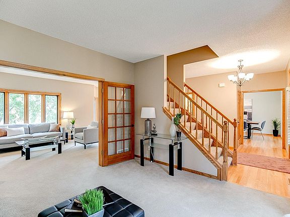 Nicely appointed 2 story home offers 5 beds, 4 baths, 3 attached garage with Epoxy floors. Situated on half acre of a beautiful flat private wetland walk out lot. Step into a welcoming foyer with ample natural lights through two impressive bay windows for the family room and formal dining. Main level features a kitchen with abundant custom-built cabinets, center island, a living room with a gas fireplace, the informal dining leading out to a huge deck overlooking nature views. Convenient main level Laundry. The owner’s suite has generous closet space and a master bath with separate tub/shower. 3 more bedrooms and a full bath finish out the upper level. Walkout basement presents the 5th bedroom, a wet bar, an amazing recreation family room with 3-sided fireplace and a ¾ bath. Highlights: Low Maintenance sidings; Sprinkler System; Leaf Filter Gutter Protection; Updated HVAC; California Closets for 4 Upper Bedrooms. Walking distance to French Regional Park. Ideal house to call home!
