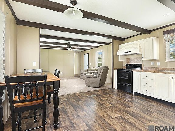 Enjoy peaceful country living with the convenience of nearby amenities in this well-maintained 3-bedroom, 2-bath mobile home on a spacious lot in St. Amant. The open floor plan features a welcoming kitchen with laminate flooring, white cabinets, black appliances, and a handy pantry. The adjacent laundry room includes backyard access for added convenience. Retreat to the master suite, complete with a large soaking tub, separate shower, double sinks, and a generous walk-in closet. The two additional bedrooms feature cozy carpeting and ceiling fans. Super clean and lovingly cared for, this home is move-in ready and offers a great balance of rural charm and modern comfort!