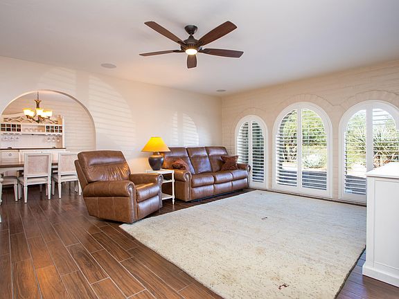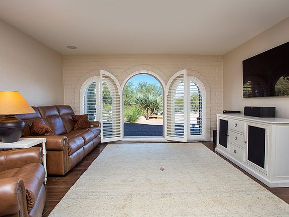 Pristine Horse Property-blow appraised price B4 $30k pool renovation! Beautifully updated! Boasts spectacular mountain views, newer wood-look tile floors, 6-panel doors, & custom plantation shutters throughout. Great space for social gatherings with the kitchen/great-room overlooking the back yard, a family room & living room. Master bedroom has 2 walk-in closets & spacious bathroom. The guest room with private bathroom & door to back yard add to the allure of this home. The attached heat/cooled storage room & workshop provide an abundance of storage space. Newer oversized/extended 3-car garage, newly renovated pebble-tech pool & cool deck. 6-stall covered horse facility, large outdoor arena, 40ft tack room, & self-watering plumbed. Invisible fencing, just provide your own controllers!