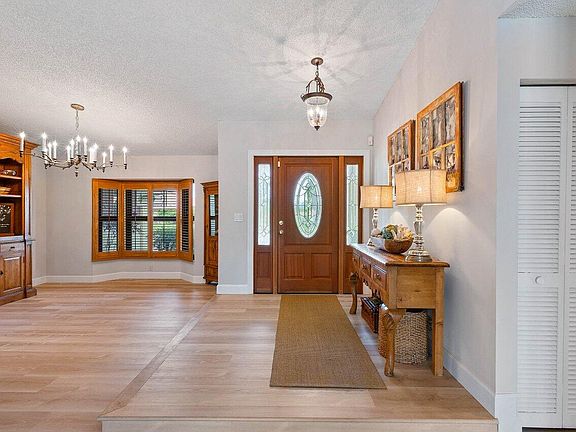 Welcome to your dream home in the gated community of Island Lakes! This stunning 4-bedroom, 2.5 bathroom home spans 2,440 sq ft and offers breathtaking views of the pool and lake from the moment you step inside. The kitchen is complete with beautiful wood cabinetry and an open layout that seamlessly flows into the family room, where sliding glass doors lead you to the expansive beautiful large screened pool/patio area. The patio features thick tumbled travertine pavers, creating an elegant and inviting outdoor oasis that extends to the charming fire pit area. The primary suite is a true sanctuary, boasting its own pool views and a spacious tranquil bathroom with steam shower. Additionally the property is equipped with a whole house generator and a 2-car garage. This home is a true sanctuary, offering the perfect blend of elegance and comfort for your ideal lifestyle.