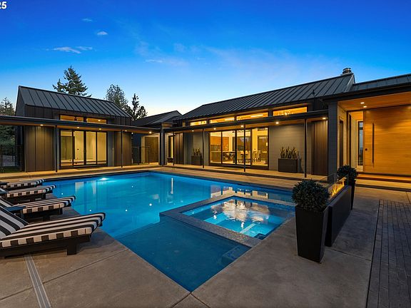 Fabulous Multi-Home Compound with Serene Countryside Views & Resort Amenities...Set on 2.78 private acres in Washington County, this extraordinary custom-built modern estate—offers a rare combination of architectural excellence, multi-generational flexibility, and resort-style living.The main home features 2 spacious bedrooms and 2.5 baths, anchored by a dramatic great room with 17-foot cedar vaulted ceilings, radiant-heated porcelain floors, and a sleek linear gas fireplace. A 10-foot Sapele mahogany pivot door welcomes you into a space designed to harmonize with nature, with expansive walls of glass framing panoramic valley views. The chef’s kitchen is a culinary masterpiece, outfitted with Sub-Zero, Miele appliances, induction cooktop, double ovens, espresso machine, and a walk-in pantry.Connected by a covered breezeway, the second home—perfect for guests, extended family, or a private retreat—offers 2 additional bedrooms, 2 full bathrooms, a recreation room, and a sitting room, all opening to the stunning saltwater pool courtyard. This outdoor paradise is designed for year-round entertaining, featuring a hot tub, multiple fire features, and a covered outdoor kitchen with a Wolf grill, granite island, heaters, and ceiling fans.Smart home technology enhances every detail, with Sonos sound, Lutron lighting, motorized blinds, and Crestron automation. Additional amenities include a private fitness studio, a four-car garage, and a 1,100-square-foot heated shop with space for 4–5 cars. All this, just minutes from Rock Creek McMenamins for a world-class beer or Helvetia Tavern for an iconic burger.This is more than a home—it’s a lifestyle compound built for connection, comfort, and unforgettable experiences.
