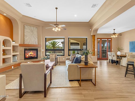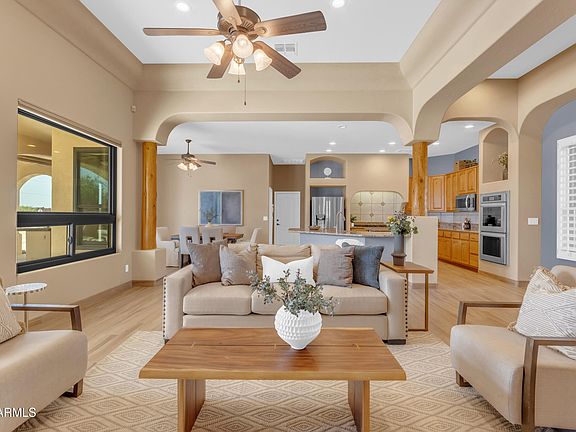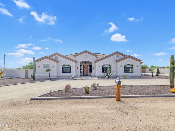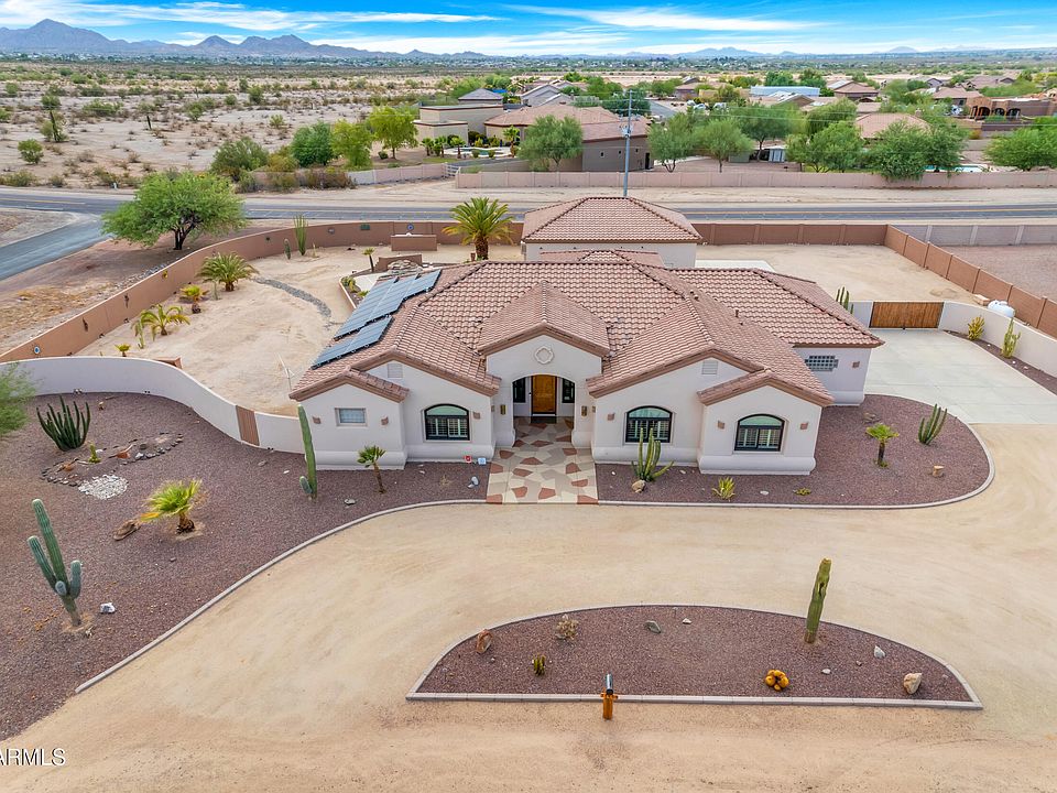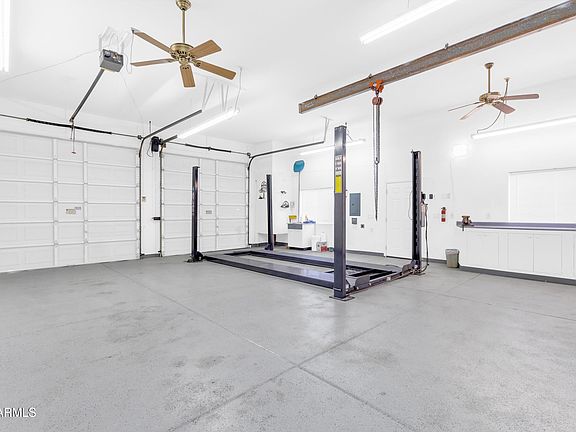 MOVE-IN READY and truly the BEST DEAL IN TOWN! This 2,425 sq ft custom home on nearly 0.8 acres in Grand View Ranches 2 offers 3 bedrooms, 2 bathrooms, and soaring 10-12 ft ceilings. The highlight is the incredible 1,200 SQ FT DETACHED WORKSHOP, a car enthusiast's dream complete with lift and gantry crane, perfect for mechanics, craftsmen, or anyone needing serious space. Enjoy a heated pool with waterfall feature, fixed solar lease (~$70/mo) for energy savings, Renew by Andersen windows, six covered parking spaces with RV access and a circular driveway, plus a gas fireplace, eat-in kitchen, and walk-in pantry. Outdoor living shines with Kool Deck patios designed for entertaining. This home combines luxury living with a workshop unlike anything else on the market—an absolute must-see!