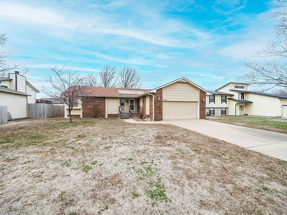 Excellent opportunity to build equity in the Maize School District, Wichita taxes, and Cul De Sac location! Immediate possession is available with seller title work started at Security 1st Title. Walk into the front room with vaulted ceiling and wood burning fireplace. Kitchen has been updated with; custom cabinets, solid surface tops, and pantry with the refrigerator and stove staying. Sun room off the kitchen has settled and has heat/air. Big master bedroom with private bath with shower. Second and third bedroom on the main floor have been combined to one HUGE room with oversized walk in closet. Second fireplace in the basement family room with egress. Two large bonus rooms, separate office space in the hall, large bathroom, and storage completes the basement. Fully fenced backyard and two car garage with central vacuum is ready for a new owner!