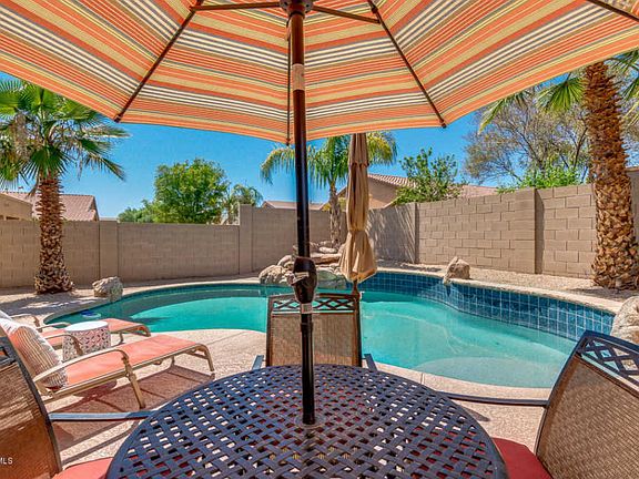 Truly a rare find! Large, beautiful single level estate home on a cul de sac lot! Not only does this home offer a quiet street, landscaping & pool service included but you will also enjoy updates throught the home including low maintenance tile in all the common areas, granite in all 3 full bathrooms, 5 large bedrooms, a designer gated salt water pool, large covered patio, Luxury master closet, impressive walk in master shower, subway tile in secondary bathrooms and more! The enormous great room offers 3 additional banks of cabinets and counter space for all of your storage needs and this sizeable room can easily fit a large gathering for any occasion. You will also rarely find a 3.5 car side by side garage, RO and water softener systems, double side gates including a 6 ft RV gate & more.