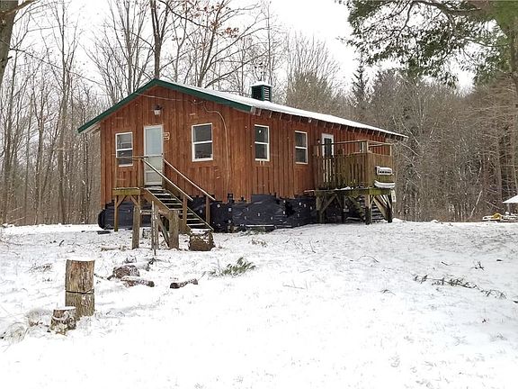 HANDYMANS SPECIAL!! Come see this two bedroom remote Cabin overlooking a large Pond! This secluded Cabin has over 10 acres set back 1700 feet from the roadway. Property boasts a 14'x36' Woodtex Shed with overhead door, electric & insulation. Property also features storage outbuildings. This property can be a seasonal getaway or year round destination. Cabin would make a great hunting camp or weekend getaway, don't forget to stock the pond in the spring! Interior needs finishing.