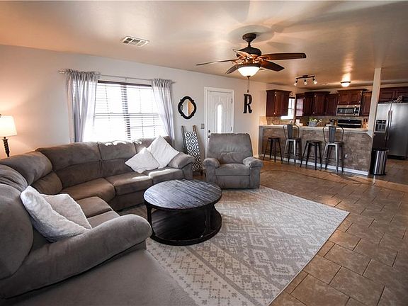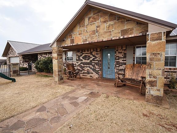 This is a beautiful country home in Merritt School District just minutes from Elk City. Inside features zero wasted square footage and includes 3 bedrooms 2 bathrooms and open floor plan with a wonderful kitchen that includes solid surface counter tops, stone tile backsplash and bar seating. Outside is made to entertain! You have a covered breezeway between the garage and house that makes for a great outside dining area, a huge flagstone patio in the back surrounded by wrought iron fencing with fireplace and hot tub in a gazebo. There is a lovely front fenced in area as well with wrought iron fencing. Lastly you have a cellar and generator all on 3 acres!