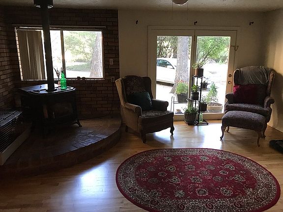 Do not disturb tenants. Single level rancher on over 1 acre usable property. RV Carport. No Garage. Private, secure neighborhood. Comfortable but not updated. Stainless appliances. Laundry room. Hardwood floors, vinyl, laminate and carpet. Dual pane windows.Fenced yard in back with established rose garden and raised beds for vegetables or gardens. Approved pets welcome! Wood stove in LR, Pellet Stove in Family, Wall propane heat in LR, Evaporative cooler in LR. Currently, no forced air heat or cool.No showings until June 1st. New pictures coming soon. Plus all utilities