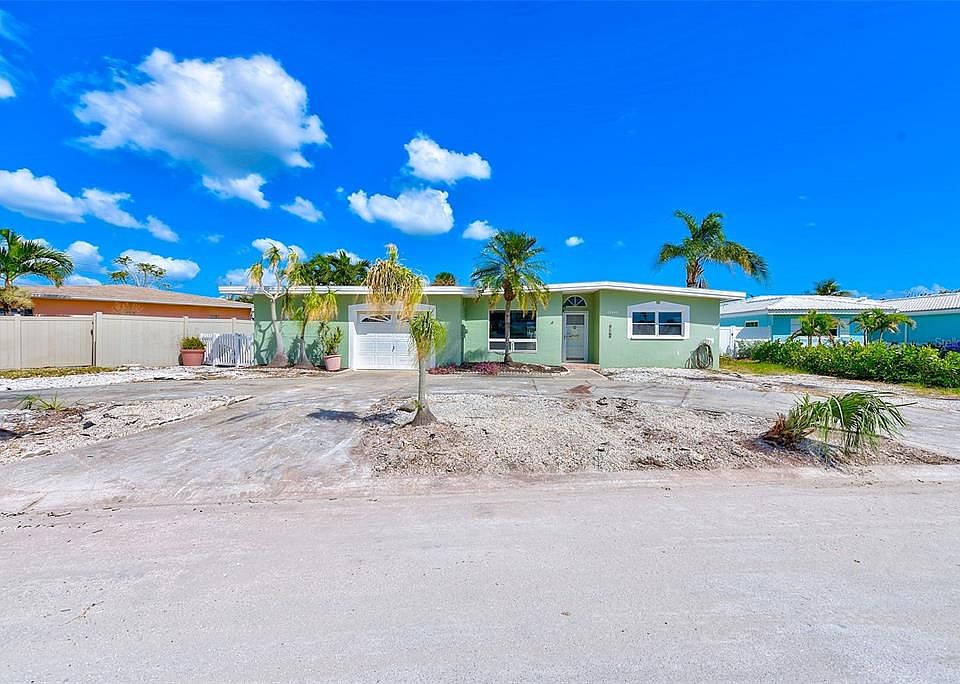 MOTIVATED SELLER This home is being sold AS IS after flooding from Hurricane Helene, but the potential is unmatched, offering an incredible opportunity for a quick sale at an attractive price. Take advantage of the location, just steps away from the beach, restaurants, and local attractions. Live your coastal dream on the exclusive Isle of Palms! Cash offers only. Escape to your own waterfront retreat in this charming beach bungalow, nestled off the beaten path! This spacious 2-bedroom, 2-bath home offers the perfect blend of coastal living. The open concept living, dining, and kitchen area creates a welcoming space, filled with natural light, and flows seamlessly to the expansive Florida room, which overlooks the pool and canal. Whether you’re entertaining or simply enjoying a quiet evening, the outdoor living spaces, including a private pool and dock, provide a true tropical oasis. This home boasts an oversized one-car garage, a large circle driveway, and plenty of off-street parking for guests. Imagine fishing, swimming, and boating right from your backyard, with quick access to Boca Ciega Bay and the Gulf of Mexico. Enjoy all that the friendly community has to offer, from neighborhood events like monthly dinners, yard sales, and a festive Firetruck Christmas parade, to a waterfront park and playground within walking distance. With no HOA or CDD restrictions, you can park your golf cart, boat, trailer, or RV with ease. The interior has already been stripped and cleaned in preparation for renovation. Buyers looking for land opportunity, we have already engaged a demolish company for pricing and preferred scheduling to start an elevated new build quickly.