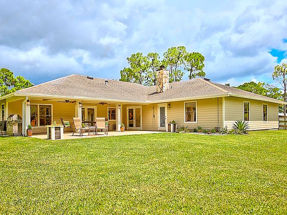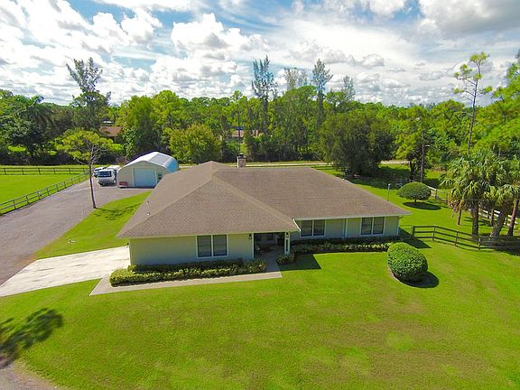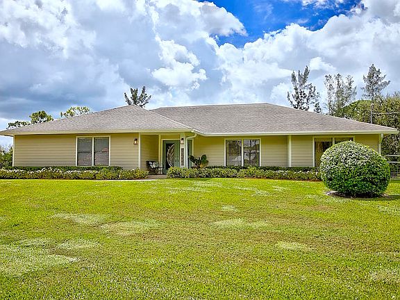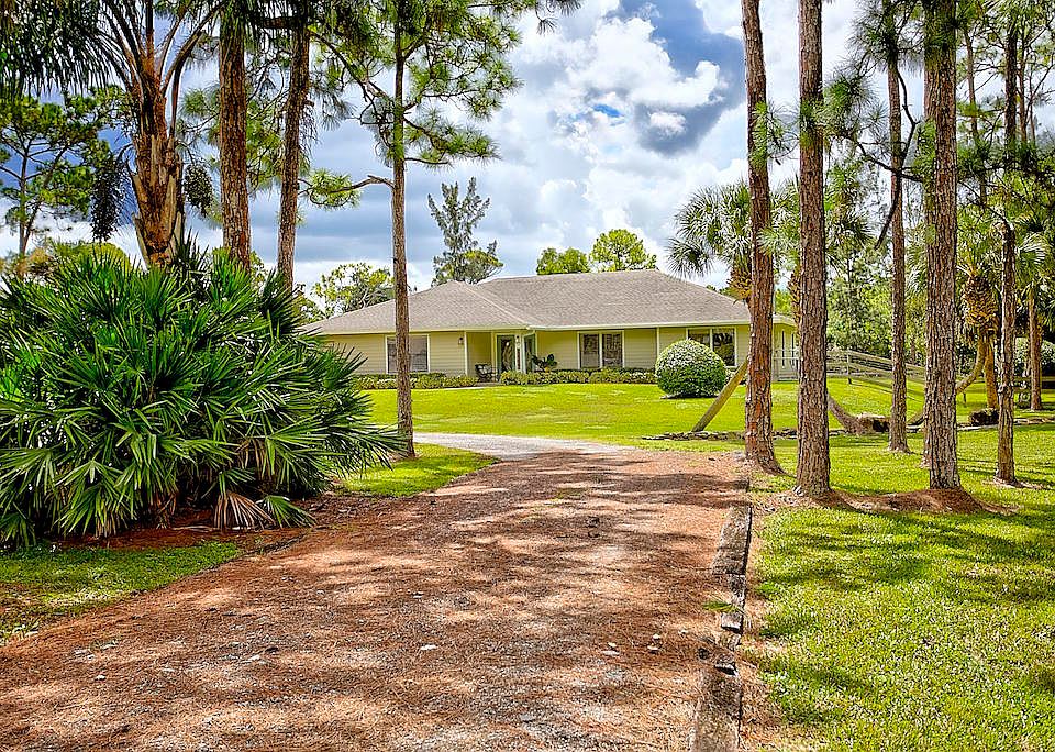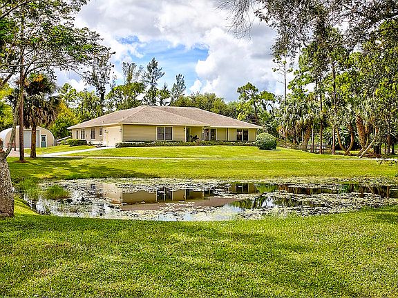 This stunning Estate Home is situated on a private, paved road on 1.25 acres in the Eastern part of The Acreage. With 4 bedrooms and 2 1/2 bathrooms, this home is flooded with natural light, has scenic views of a private pond and features beautiful interior finishes. Its split floor plan make it the perfect home for a family who loves to entertain! The home has a soft and neutral transitional vibe with several upgrades including all NEW exterior hardy board siding, french doors, renovated second bathroom, water system & septic tank. Additionally, you will find a 900 sf detached garage/work space. What are you waiting for?! Welcome home!