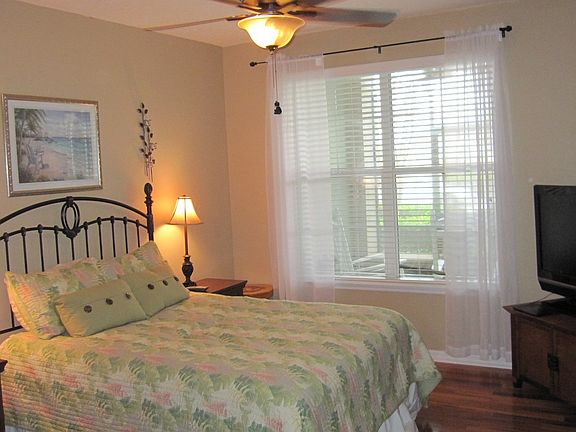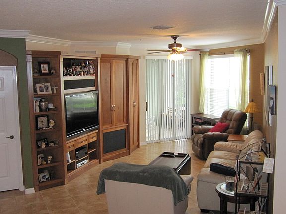 Upgraded Luxury 1st Floor Condo Kitchen features: upgraded 42 in cabinets and hardware, Silestone countertops, stainless steel appliances, crown molding, walk in pantry. Bedrooms Features: Brazilian Koa Hardwood Floors. Other Features: Custom Built In Wall Entertainment Center with flat screen television included, Custom Built in master closet, 18 in tile floors, ceiling fans, security system, screened in lanai, upgraded washer/dryer, upgraded cabinets, tops, hardware in bathrooms, assigned park space and 1 additional space. Community features: 24hr Security, state of art fitness center, a clubhouse you must see (billiards, lounge, kitchen, TV), huge pool, sand volleyball, and tennis. The Community is conveniently located to restaurants, shopping, schools, access roads, and Central FL attractions. You need to see this one!