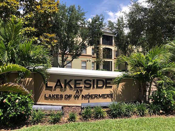 Updated three bedroom, two full bathroom condo at Lakeside at Lakes of Windermere. Third floor unit with elevator access in building. Tile and laminate flooring throughout entire unit. Screened in balcony with sliding door access. Fully equipped kitchen and laundry closet with washer/dryer. Great location, condition and price. Community features, beach volleyball courts, pool, and fitness center. Two car assigned parking. Move-in ready! Call to schedule a tour!
