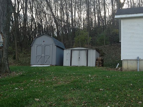 Very nice 3 bedroom, 2 bath ranch home on 3.25 partially wooded acres with country views. The interior has just been freshly painted all white. Home features Oak kitchen and dining combo. Spacious living room with stone fireplace. Main floor laundry. Garage floor ready for new owner to build garage. Large outdoor stone fire pit. Woods provide plenty of firewood. One steel and one wood extra tall storage sheds stay. Nice recreational or full time living property. Located approx. 40 minutes East of Historic Galena. Approx. 30 minutes West of Lake Carroll.