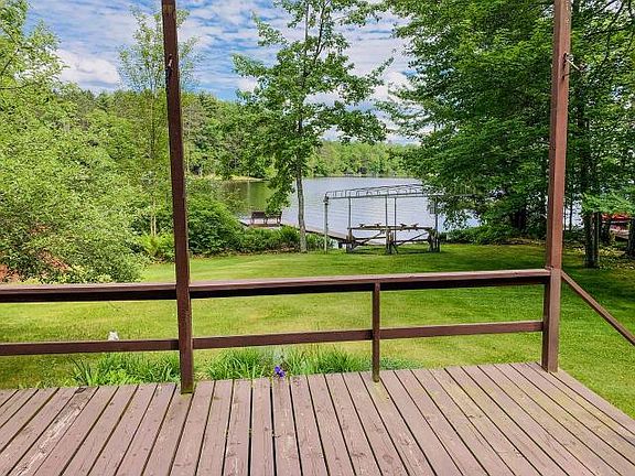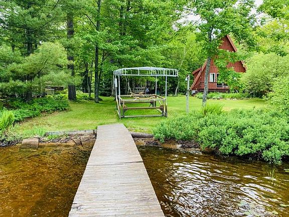 Year round cabin on level lot. Cozy A-frame with Cathedral ceiling, wood fireplace, and views of the lake. There is one bedroom, one bath on the main level and a loft bedroom with balcony. Full basement with laundry and ramp to outside. Nice level lot with sand frontage, dock and boatlift included. 2 car garage detached garage and blacktop driveway. New shingles in 2018. Forced air furnace and AC. All this at an affordable price. Muskelunge lake is a full rec lake with public boat landing only 5 minutes north of Tomahawk. Good fishing and easy access to Hwy 51 make it easy to get to.
