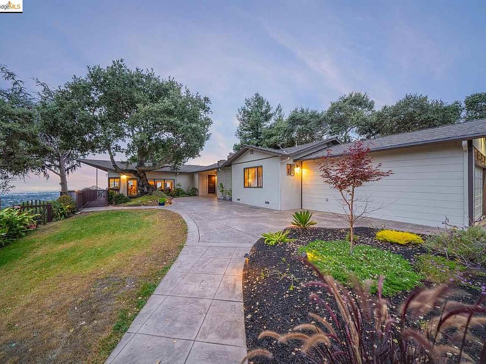 Surrounded by three ancient oak trees, this magnificent, spacious 1956 Oakland aerie is set on 1.69 private acres overlooking Chabot Park and offers impressive views of two cities and an airport. The L-shaped 3-bedroom, 2-bath designer home features European Oak hardwood flooring throughout, a stone-walled fireplace, and a stately cathedral ceiling made of elegant woodwork above the great room. This entertainer's delight is surrounded by two enormous patios and a well-tended St. Augustine's grass lawn. The spacious fenced yard is edged by old-growth lilies. There are gardens front and back, and planting boxes for your home-grown vegetables. Features a modern chef's kitchen with exquisite granite surfaces and splashboard. Plenty of storage, too! Minutes from 1-580, the Oakland Zoo and a quick drive to Montclair Village. Open Houses: Saturday & Sunday 2:00pm - 4:30pm
