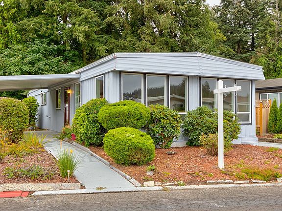 Beautiful, fully remodeled unit, including new roof, is ready for its new owner! Wonderful home in 55+yrs Park ~ Royal Villas - A sanctuary close to shops & restaurants off Hwy 99. 2 bed/2 bath home featuring fully remodeled kitchen with new appliances and butcher block countertops. A large living room with new carpet and extra windows for plenty of natural light. Brand new bathrooms including flooring, vanities and showers. Fresh paint inside and out. Expansive covered deck overlooking garden & green-space great for relaxing. Pet friendly, walking trails, pool, putting green, workout room, event space in a peaceful park. Two storage sheds and covered carport. Please ask for park amenities and activity list