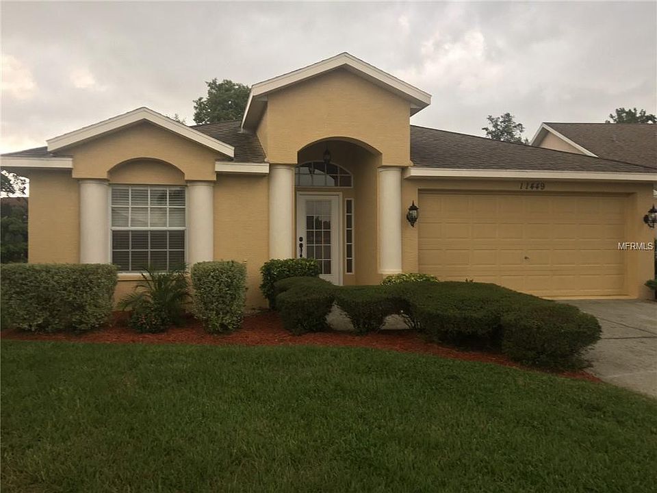 Lowest priced 3/2/2 in River Ridge Country Club! Live maintenance free in this well cared for great room plan home with an open kitchen bar, split plan bedrooms, inside laundry room and separate dining area overlooking lushly landscaped yard. Recently upgraded with laminate floors and tile, new interior and exterior paint, stainless steel kitchen appliances. A/C replaced approximately 2 years ago. Low monthly HOA fee covers lawn mowing, fertilizing, pest control, irrigation and garbage. Community clubhouse offers a full Dining Room services, PRO Shop and several activities. Well rated River Ridge Middle and High Schools are located right outside the back gate. Minutes to major commuter routes, Trinity Shopping, restaurants, hospital and more. Repaired settlement,fully insurable. Current HOI $540 per year. NO FLOOD INSURANCE REQUIRED.