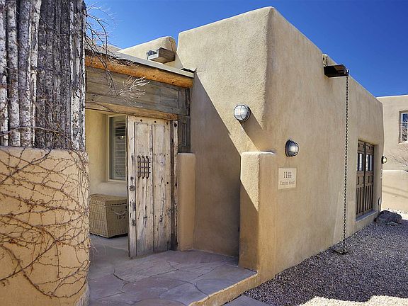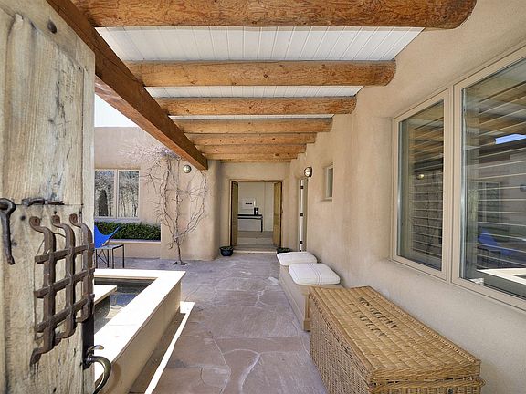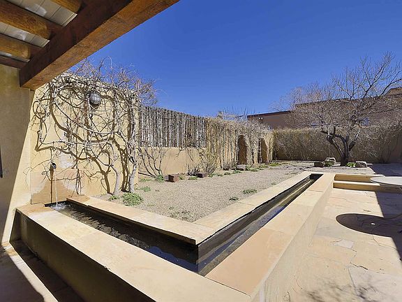 Exquisite Canyon Road property. This sophisticated 2 bedroom / 2 bathroom, approximately 2,400 sq/ft home features all high-end finishes and the absolute best in design and style: clean lines...generous room sizes....high ceilings....amazing courtyard with fountain and gardens....chef's kitchen...beautiful bathrooms...adobe and frame construction...separate den with fireplace and a great floor plan with bedrooms located at opposite ends of the home. This is a single family property with no HOA and offers ample street parking !!! And...of course.... the Canyon Rd location is a quick walk to restaurants and galleries ! A beautiful and elegant Santa Fe home which is not to be missed!
